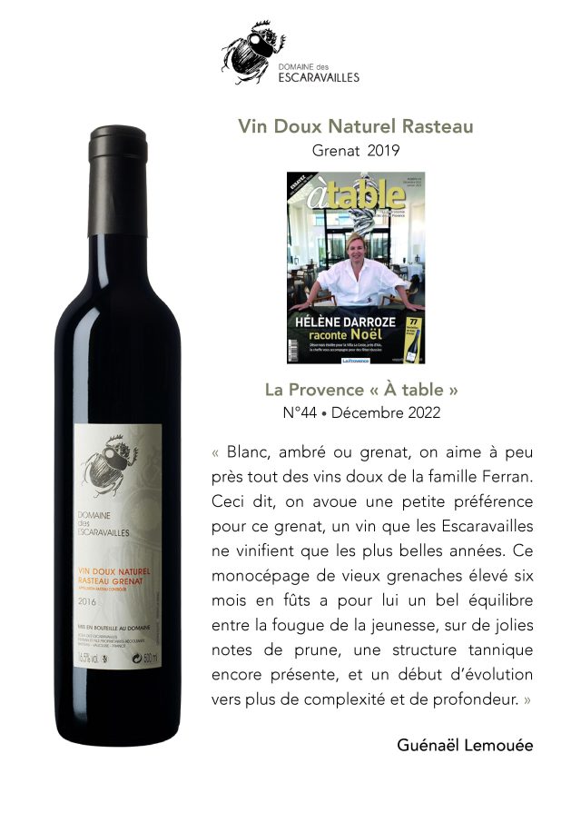 01 décembre 2022 | Presse La Provence « À Table » – n°44 – Décembre 2022 Les Vins Doux, un continent à part à redécouvrir Lire la suite